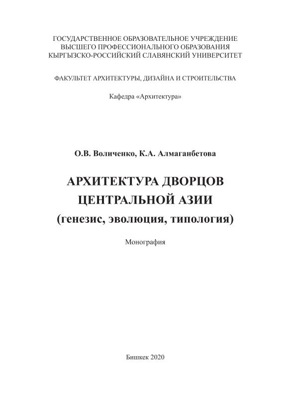 Архитектура дворцов Центральной Азии (генезис, эволюция, типология): монография
