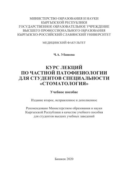 Creators Убашева Ч. А. Imprint Бишкек: Изд-во КРСУ, 2020 Collection Учебные издания преподавателей КРСУ Subjects Медицинские науки — Патологическая физиология; Медицинские науки — Стоматология UDC 616.31-092(075.8) Document type Tutorial File type PDF Language Russian Rights чтениеИ, печатьИ, копированиеИ Record key RU/ГПНТБ России/KNIGI/61/У 17-865928008 pdf, 1.6 Mb -