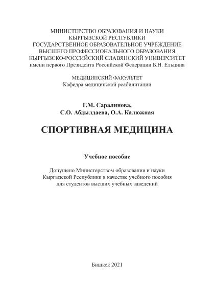Creators Саралинова Г. М.; Абдылдаева С. О.; Калюжная О. А. Imprint Бишкек: Изд-во КРСУ, 2021 Collection Учебные издания преподавателей КРСУ Subjects Медицинские науки; Спорт — Спортивная медицина UDC 61:796(075.8) Document type Tutorial File type PDF Language Russian Rights чтениеИ, печатьИ, копированиеИ Record key RU/ГПНТБ России/KNIGI/61/С 20-475820861 pdf, 1.6 Mb -
