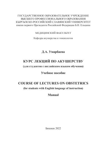Creators Умарбаева Д. А. Imprint Бишкек: Изд-во КРСУ, 2022 Collection Учебные издания преподавателей КРСУ Subjects Медицинские науки — Акушерство UDC 618.2(042.4) Document type Tutorial File type PDF Language English Rights чтениеИ, печатьИ, копированиеИ Record key RU/ГПНТБ России/KNIGI/61/У 52-331996321 pdf, 10.6 Mb -