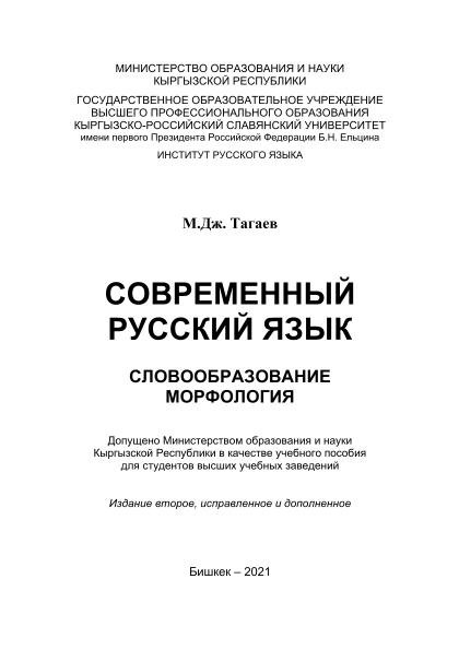 Современный русский язык. Словообразование. Морфология: учебное пособие. — 2-е изд., испр. и доп.