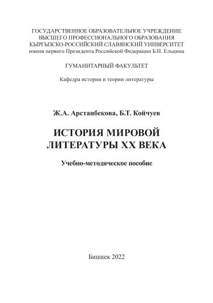 История мировой литературы ХХ века: учебно-методическое пособие