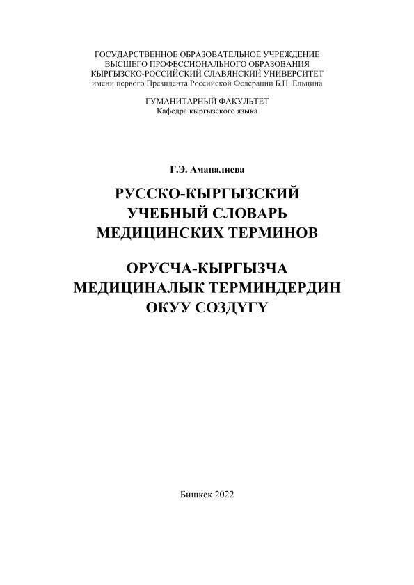 Русско-кыргызский учебный словарь медицинских терминов