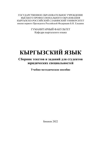 Other creators Биялиев К. А.; Аманалиева Г. Э.; Карамендеева Ч. Ж.; Шаршеева К. К. Imprint Бишкек: Изд-во КРСУ, 2022 Collection Учебные издания преподавателей КРСУ Subjects Филологические науки — Алтайские языки — Тюркские языки — Киргизский; Сборники UDC 811.512.154(076.6)(08) Document type Tutorial File type PDF Language Russian Rights чтениеИ, печатьИ, копированиеИ Record key RU/ГПНТБ России/KNIGI/81/К 97-134641061 pdf, 1.0 Mb -
