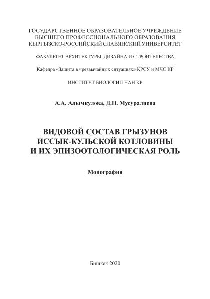 Видовой состав грызунов Иссык-Кульской котловины и их эпизоотологическая роль: монография