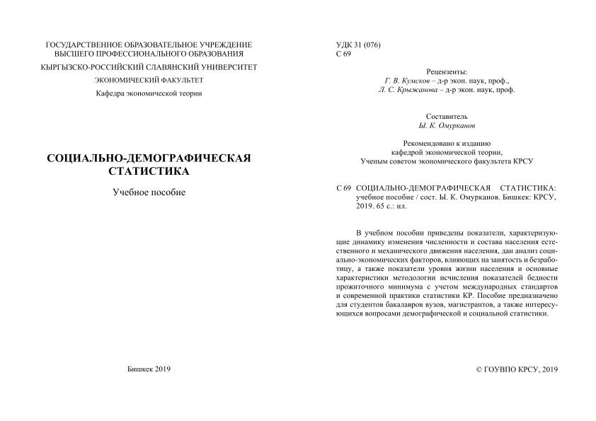 Other creators Омурканов Ы. К. Imprint Бишкек: Изд-во КРСУ, 2019 Collection Учебные издания преподавателей КРСУ Subjects Общественные науки — Демография UDC 314(075.8) Document type Tutorial File type PDF Language Russian Rights чтениеИ, печатьИ, копированиеИ Record key RU/ГПНТБ России/KNIGI/31/С 69-184889840 pdf, 0.6 Mb -