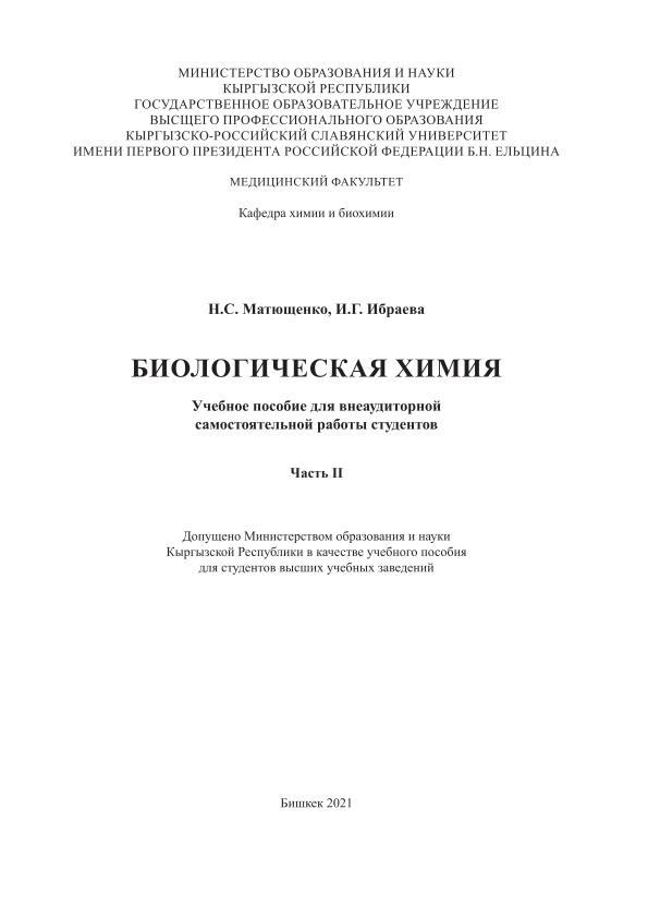 Other creators Матющенко Н. С.; Ибраева И. Г. Imprint Бишкек: Изд-во КРСУ, 2021 Collection Учебные издания преподавателей КРСУ Subjects Биологические науки; Химические науки UDC 577.1(075.8) Document type Tutorial File type PDF Language Russian Rights чтениеИ, печатьИ, копированиеИ Record key RU/ГПНТБ России/KNIGI/57/Б 63-811466808 pdf, 6.8 Mb -