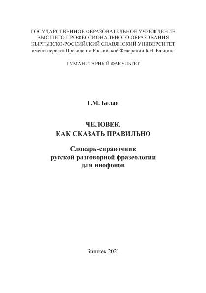 Человек. Как сказать правильно: словарь-справочник русской разговорной фразеологии для инофонов