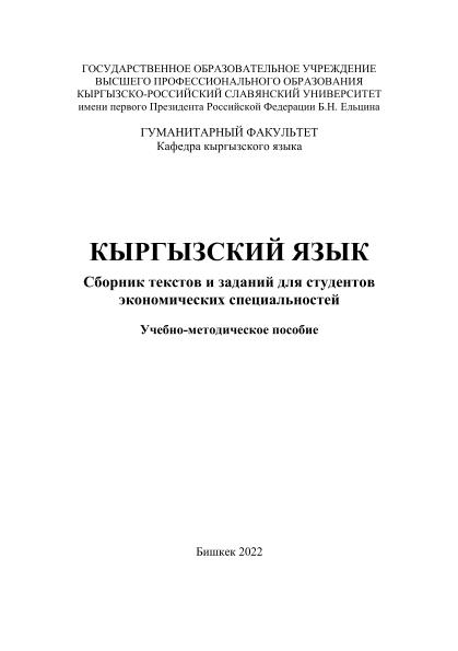 Other creators Биялиев К. А.; Аманалиева Г. Э.; Карамендеева Ч. Ж.; Шаршеева К. К. Imprint Бишкек: Изд-во КРСУ, 2022 Collection Учебные издания преподавателей КРСУ Subjects Филологические науки — Алтайские языки — Тюркские языки — Киргизский; Сборники UDC 811.512.154(076.6)(08) Document type Tutorial File type PDF Language Russian Rights чтениеИ, печатьИ, копированиеИ Record key RU/ГПНТБ России/KNIGI/81/К 97-953434059 pdf, 1.1 Mb -
